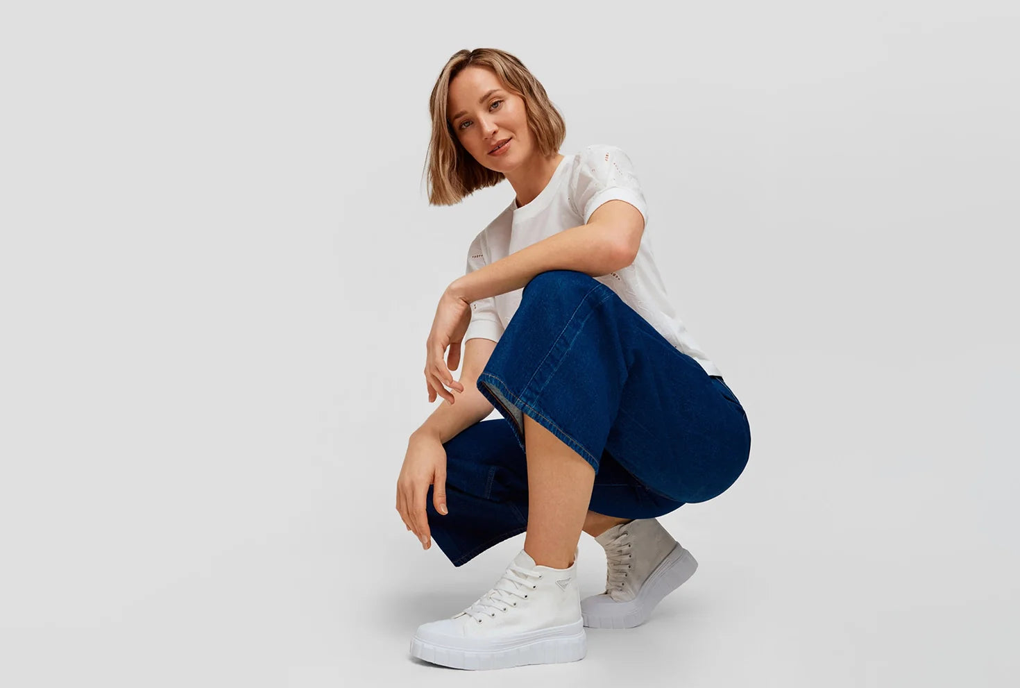 بنطال جينز رياضي نسائي منخفض الرقبة برباط من S. Oliver