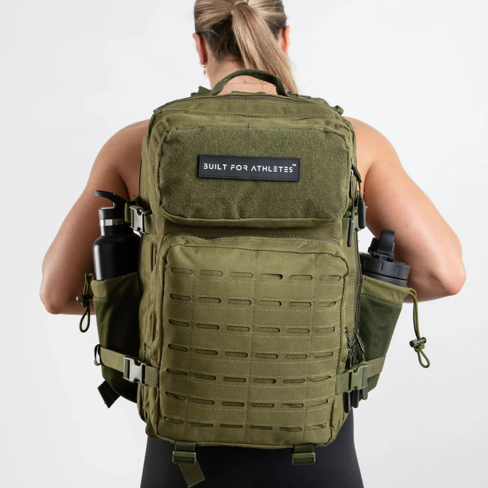 حقيبة ظهر رياضية كبيرة مصممة للرياضيين باللون الأخضر الغابي