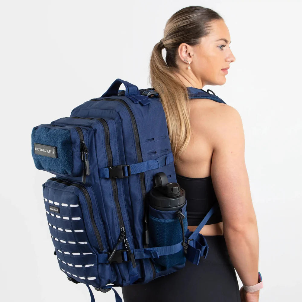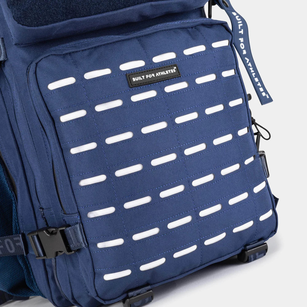 حقيبة ظهر رياضية كبيرة مصممة للرياضيين باللون الأزرق البحري والأبيض
