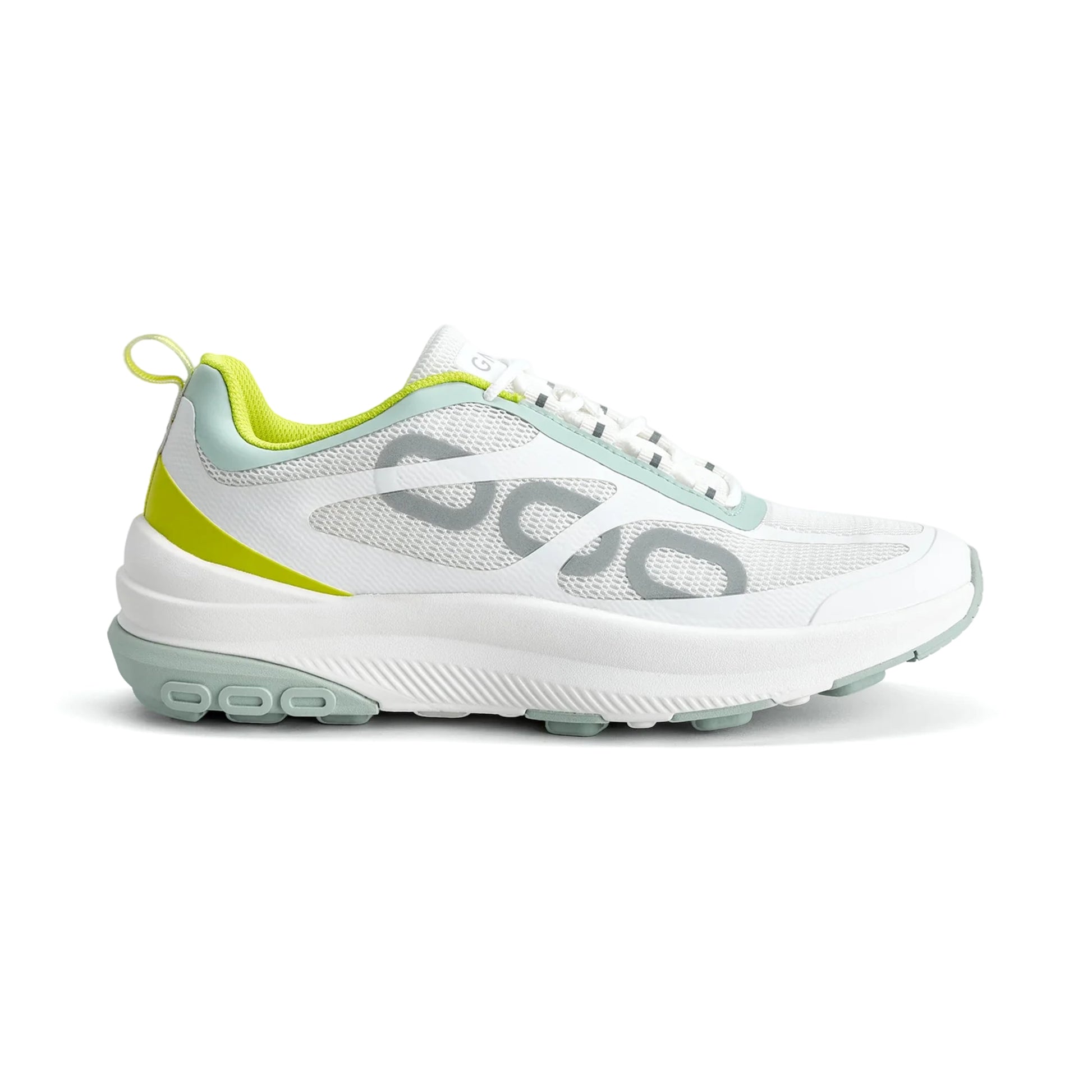 Durable upper material with supportive overlays -Recycled PE mesh lining and replaceable PU foam insole -Two-piece outsole made partially from recycled rubber -10 mm heel-to-toe drop, 30 mm stack height, 19 mm toe suspension, and 13 mm heel spring