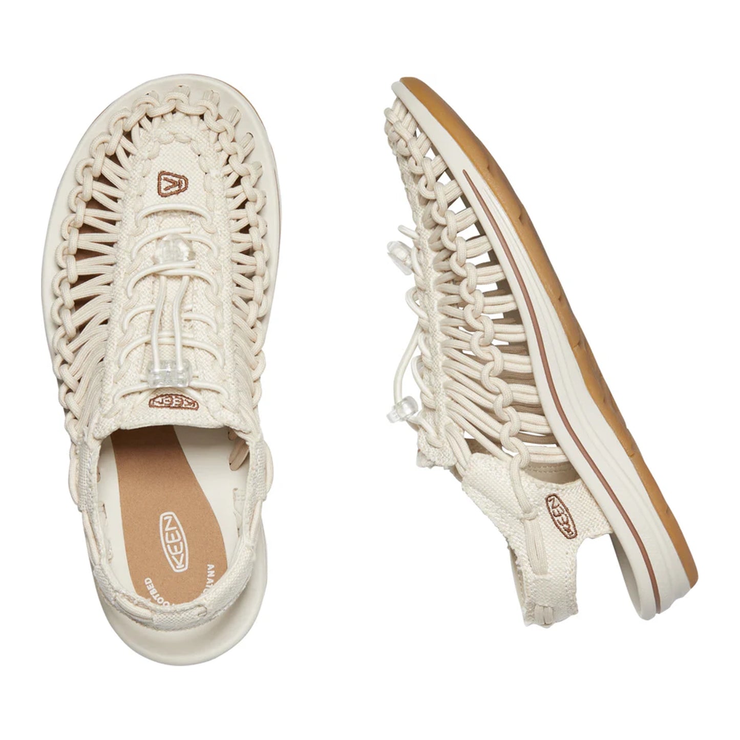 صندل مسطح أنيق للنساء من قماش طبيعي/خشب البتولا