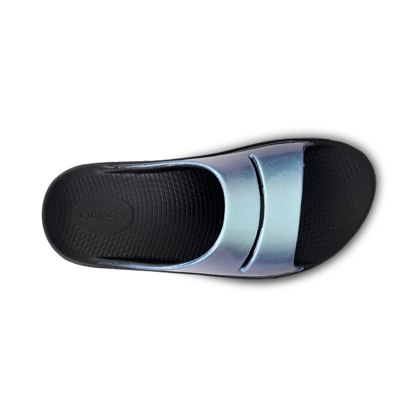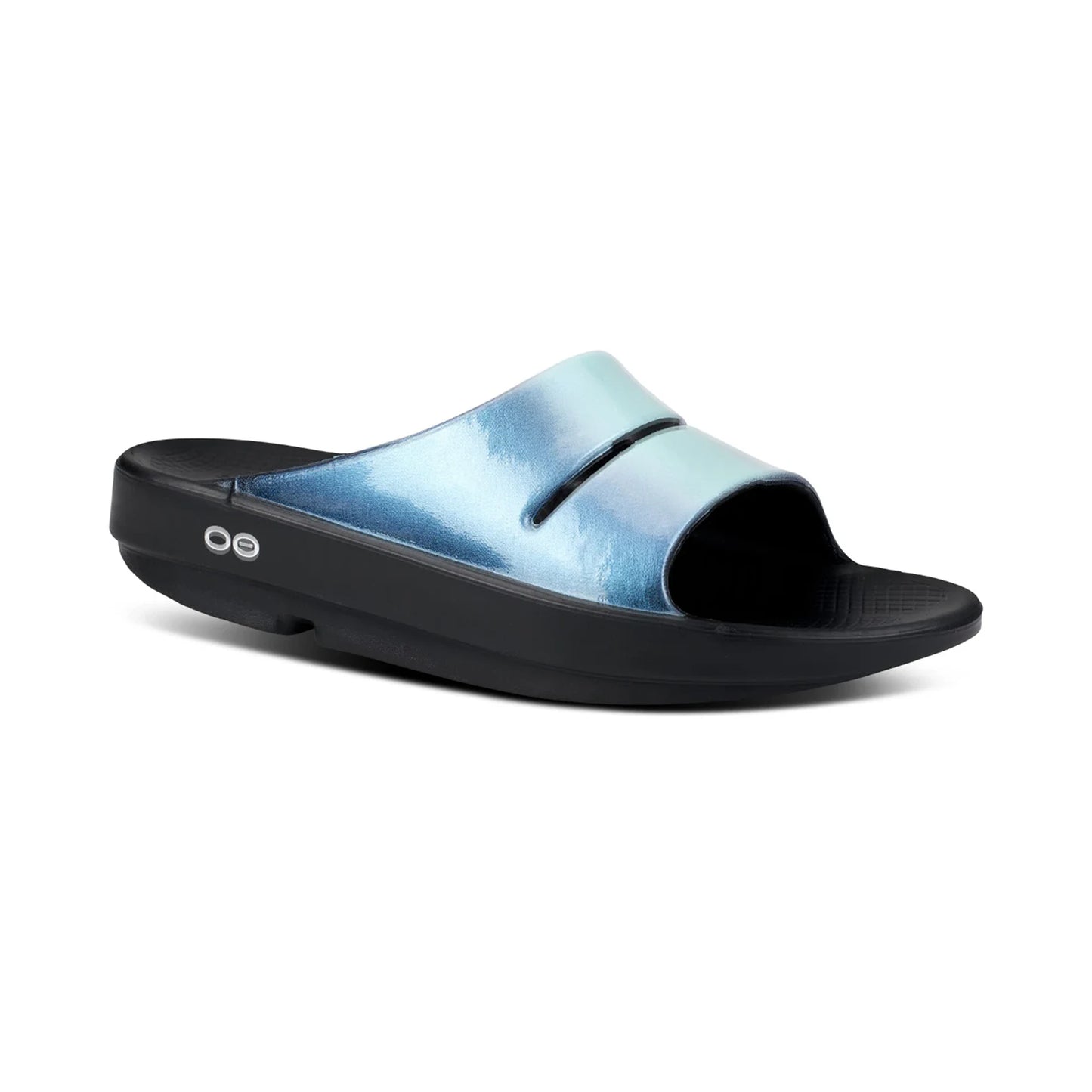 فخامة: تضفي المعالجات والطبعات النابضة بالحياة المزيد من المرح والتعبير على تصميم الشريحة الكلاسيكي من OOFOS.