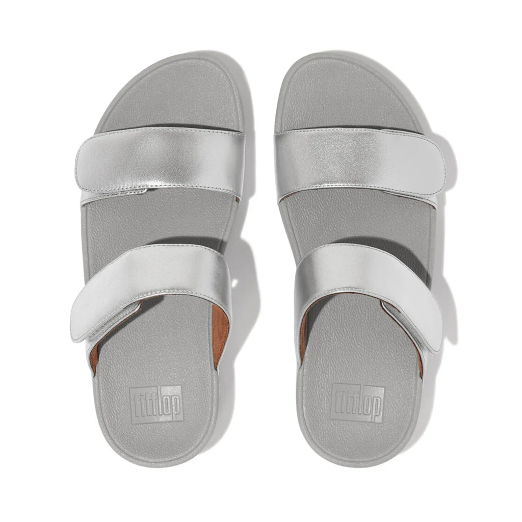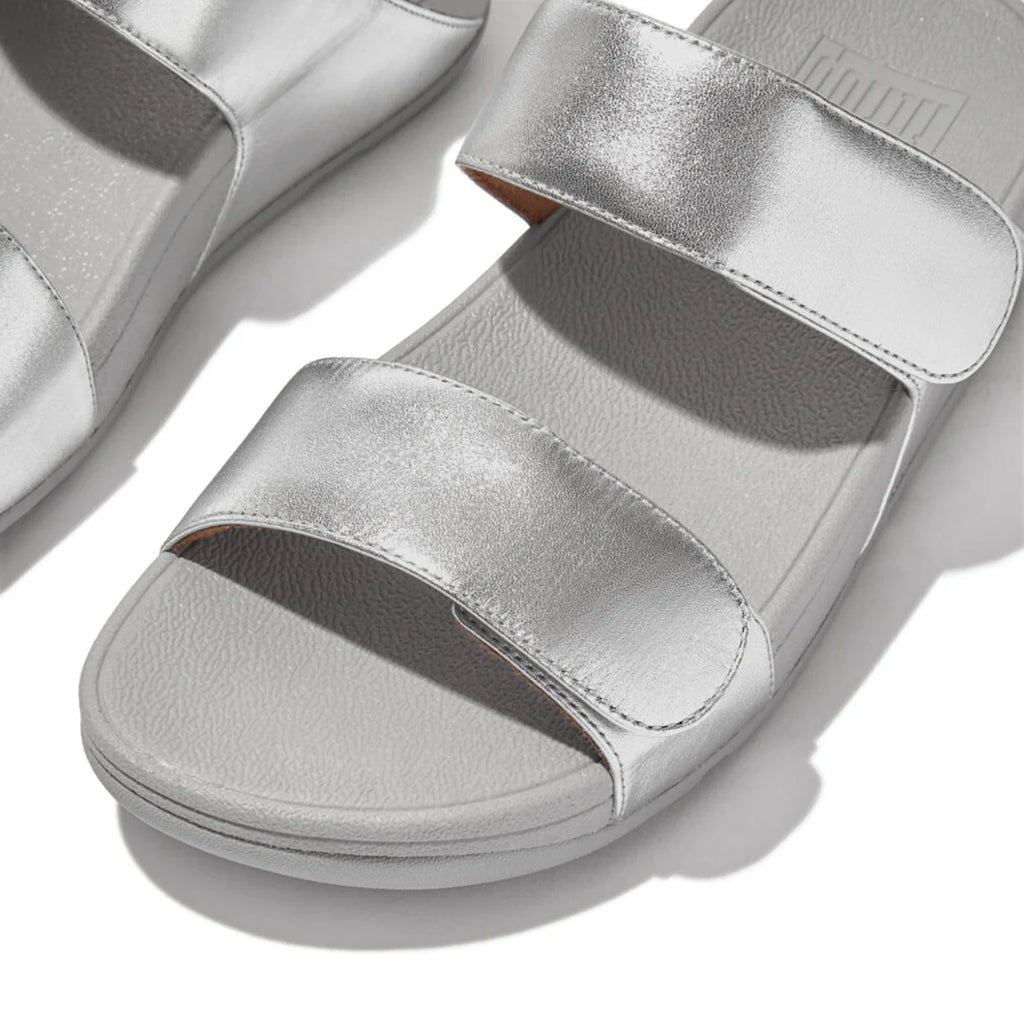 FITFLOP WOMENS LEATHER SLIDES - SILVER