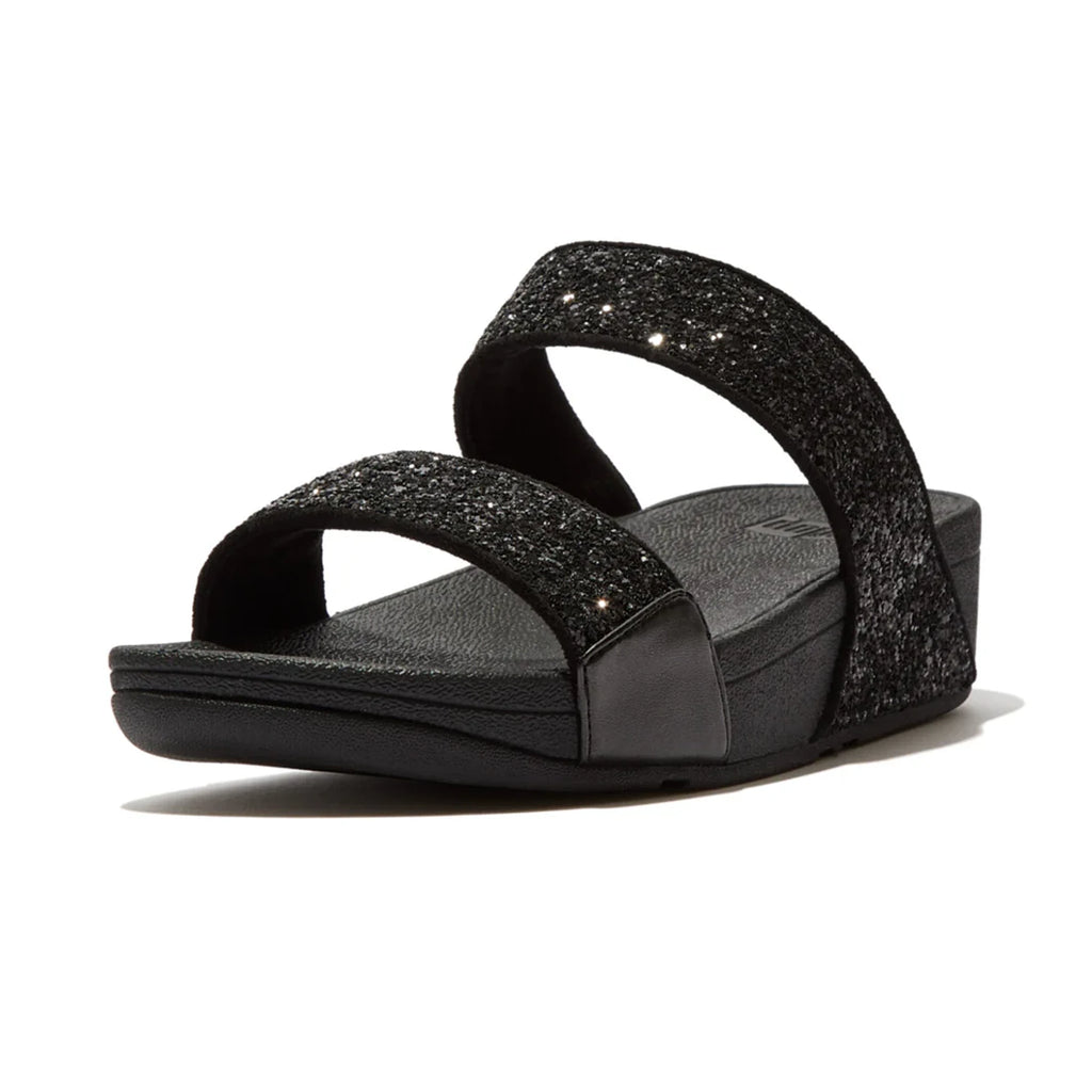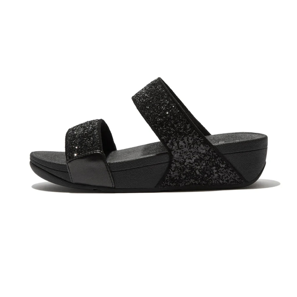 FITFLOP WOMENS LULU GLITTER SLIDES - BLACK