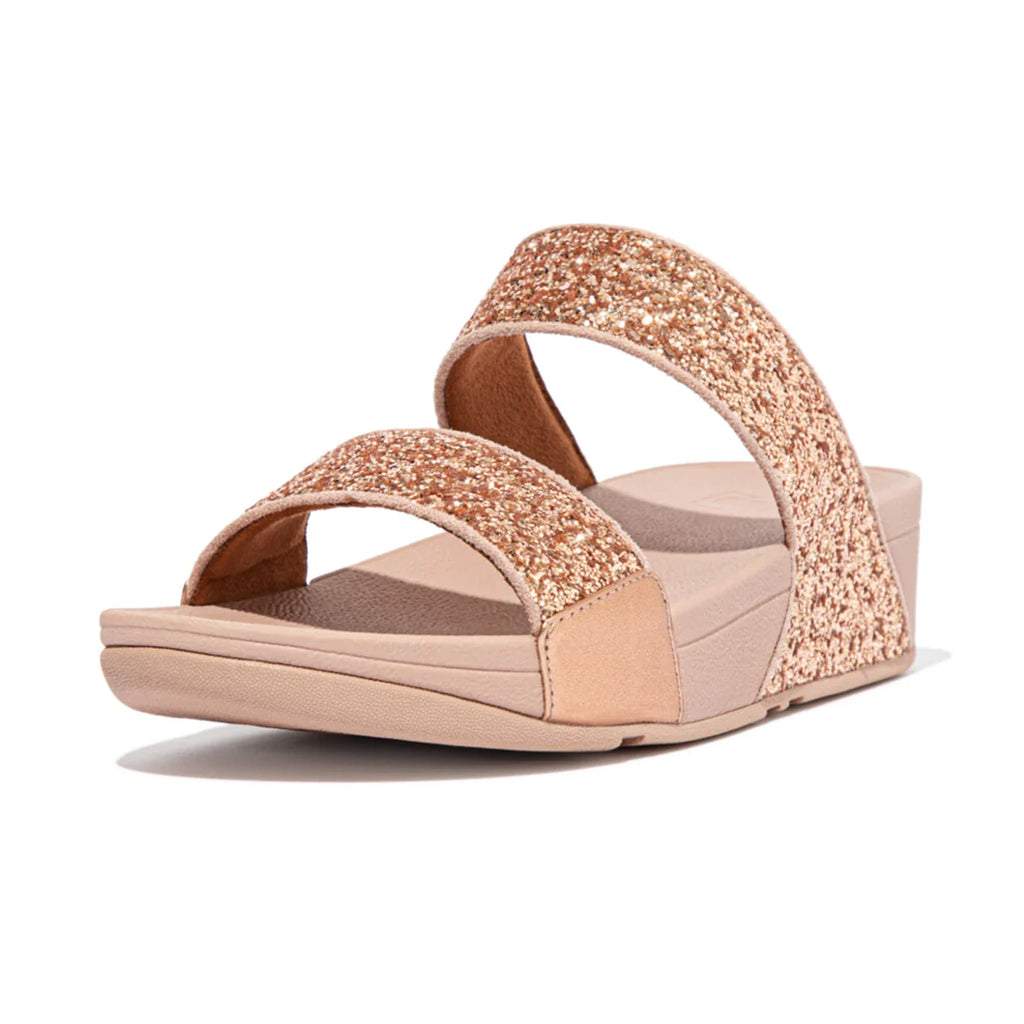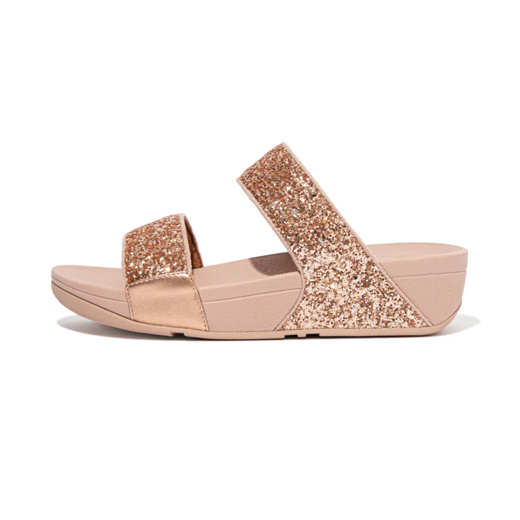 FITFLOP WOMENS LULU GLITTER SLIDES - ROSE