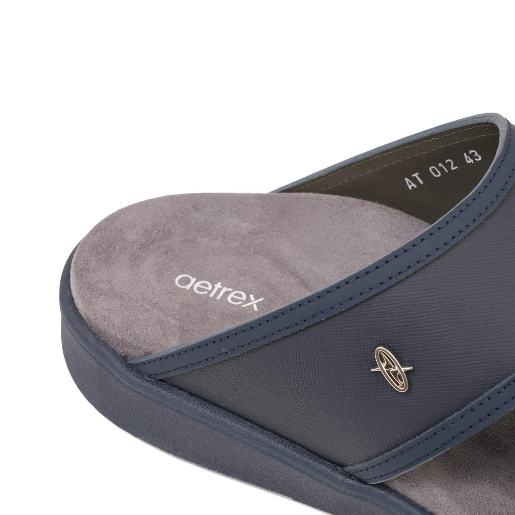 Aetrex Men's Suede Foot Bed Leather Sandals Navy