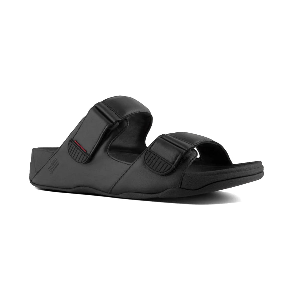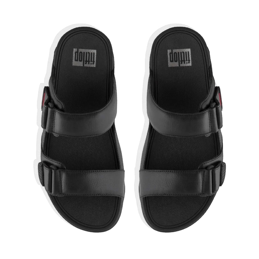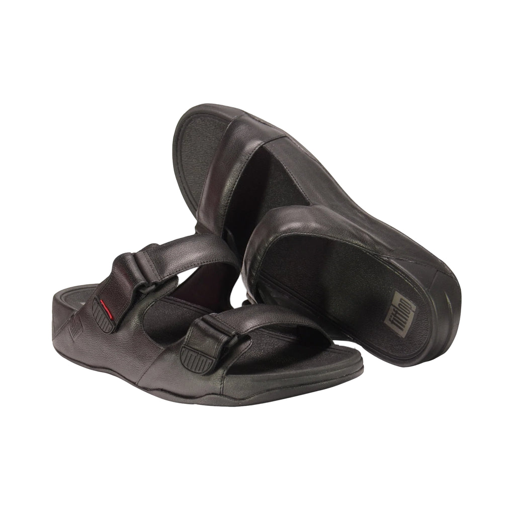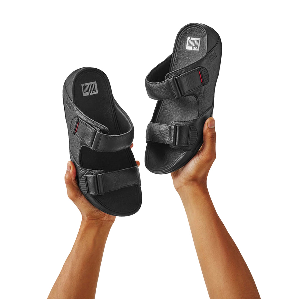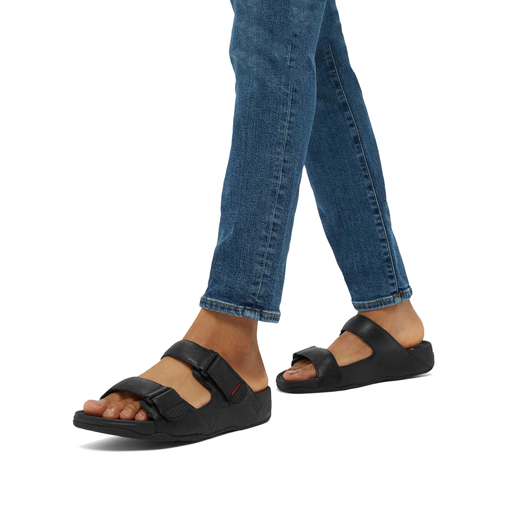 Fitflop Gogh Moc Mens Buckle Tumbled-Leather Slides Black