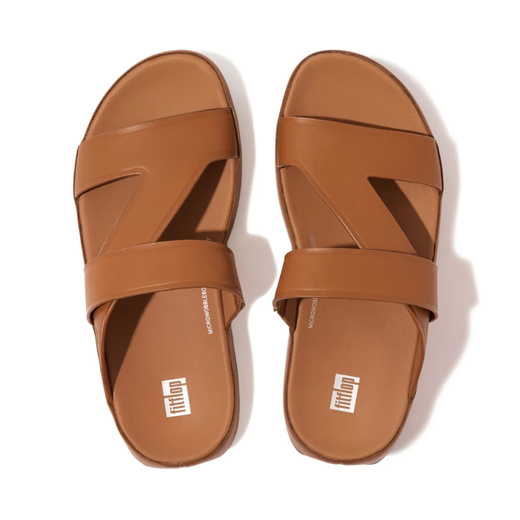 FITFLOP MENS LEATHER SLIDES - LIGHT TAN