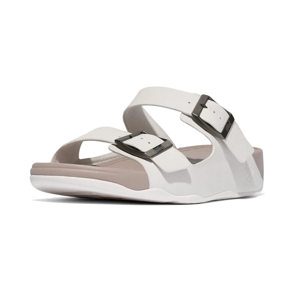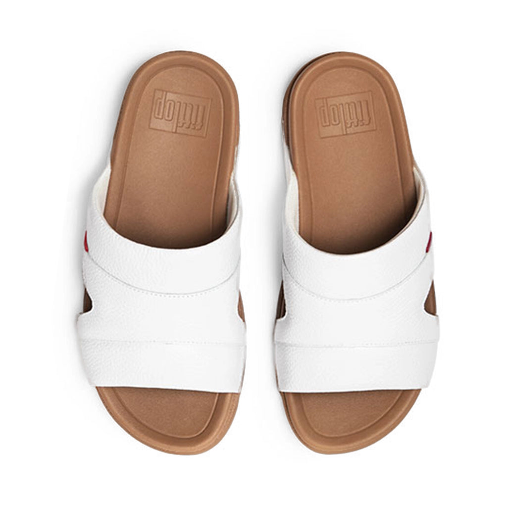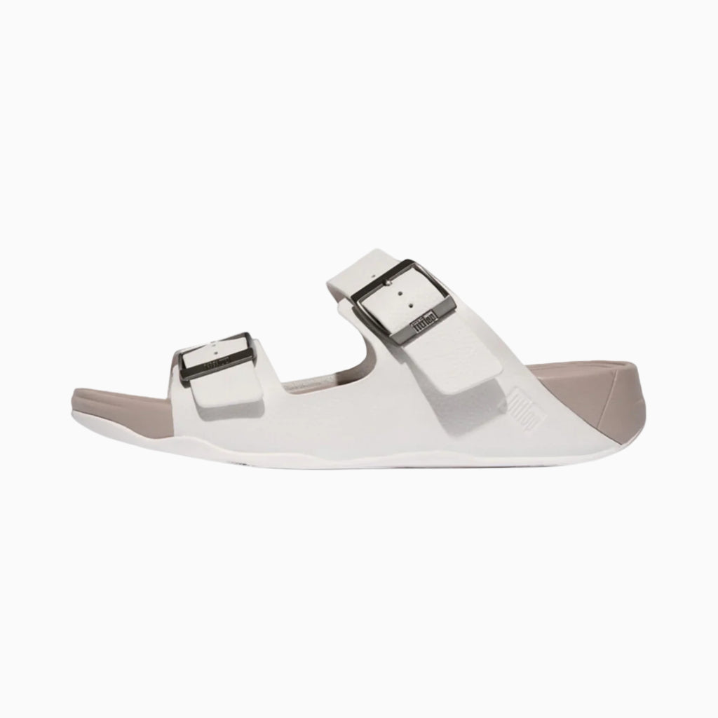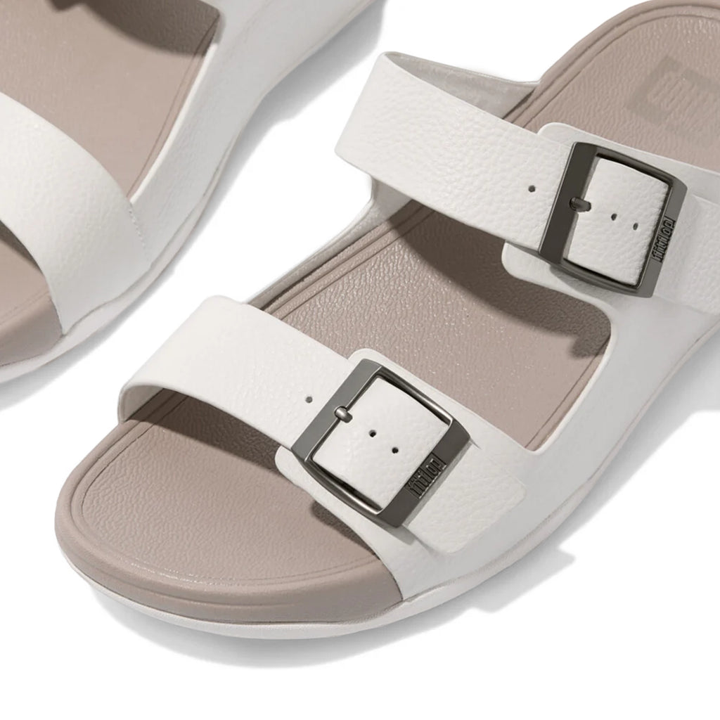 Fitflop Gogh Moc Mens Buckle Tumbled-Leather Slides Urban White
