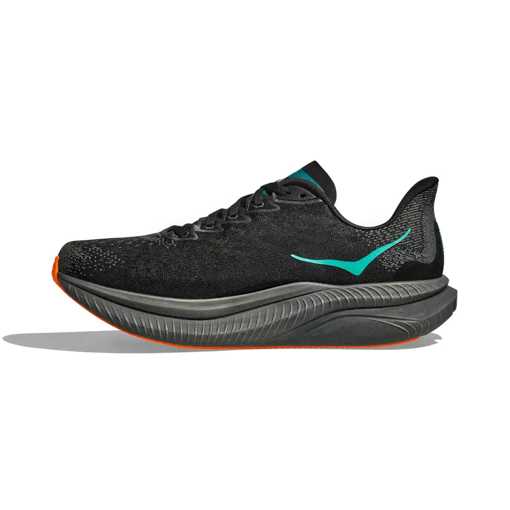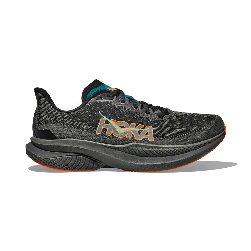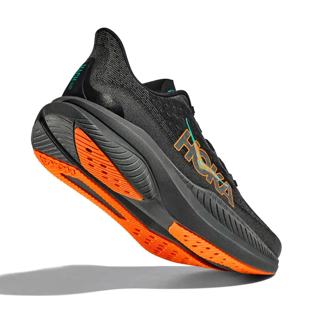 HOKA MENS RUNNING SHOES MACH6 BLACK/ELECTRIC TANGERINE