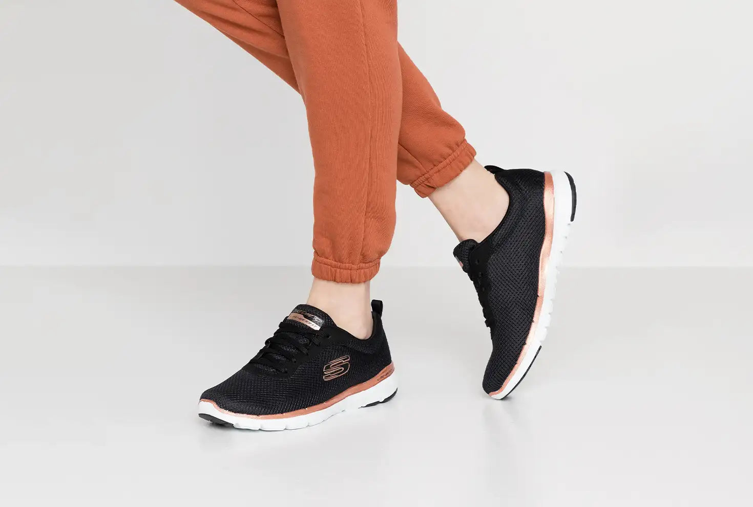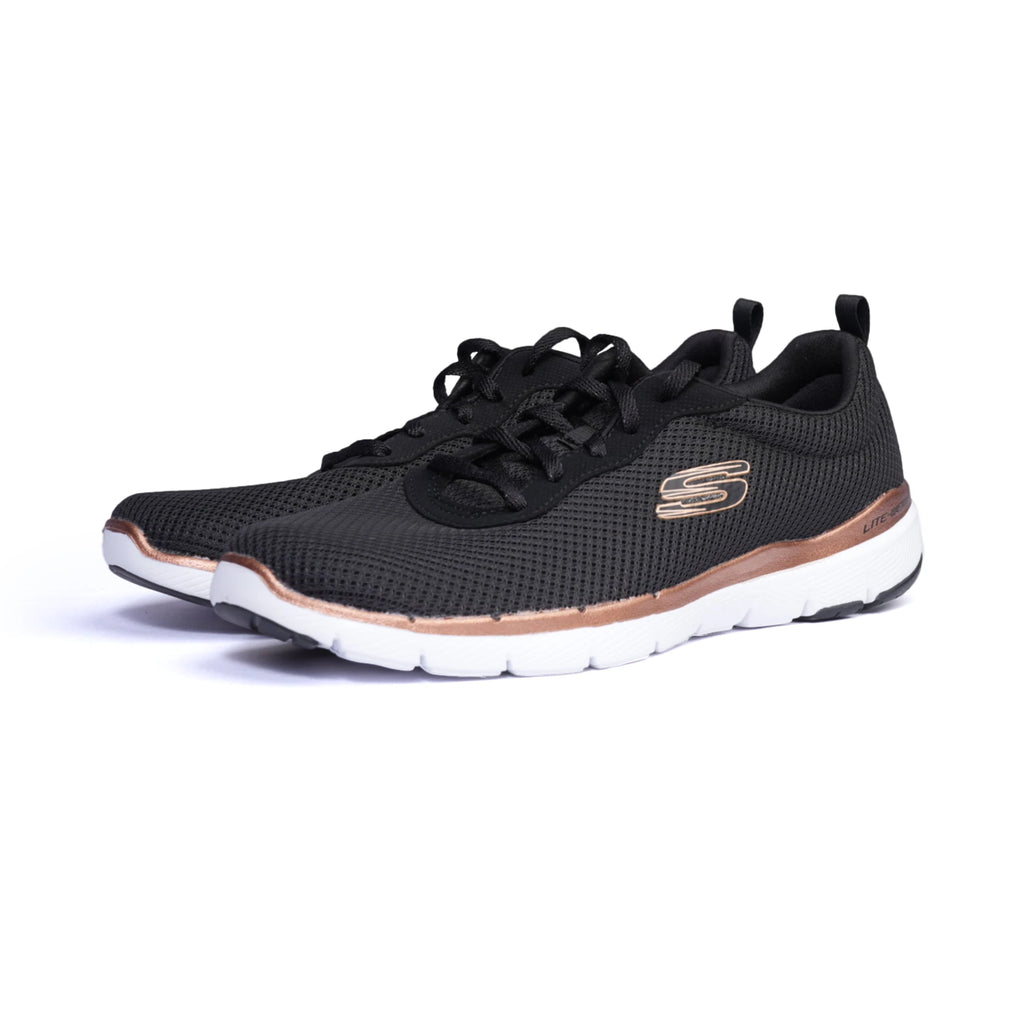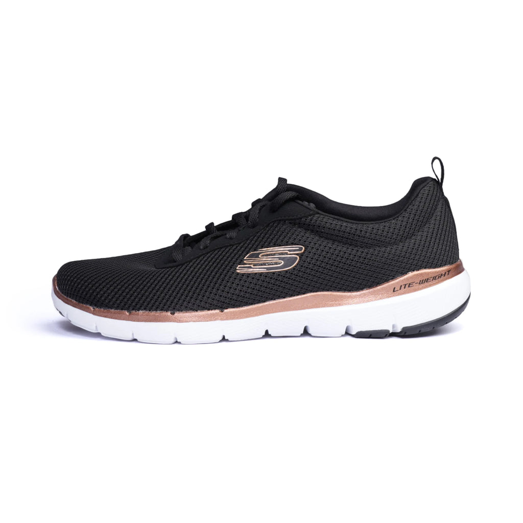 Skechers Womens Trainers Flex Appeal 3.0 Lace Up Black- Rose Gold
