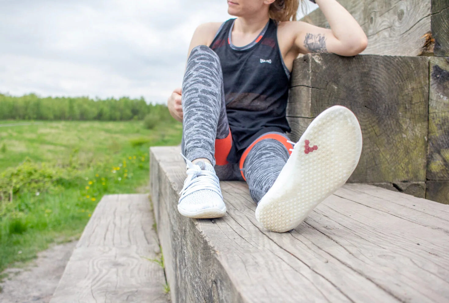 Vivobarefoot Primus Trail Knit Fg Womens Limestone Red Rumba