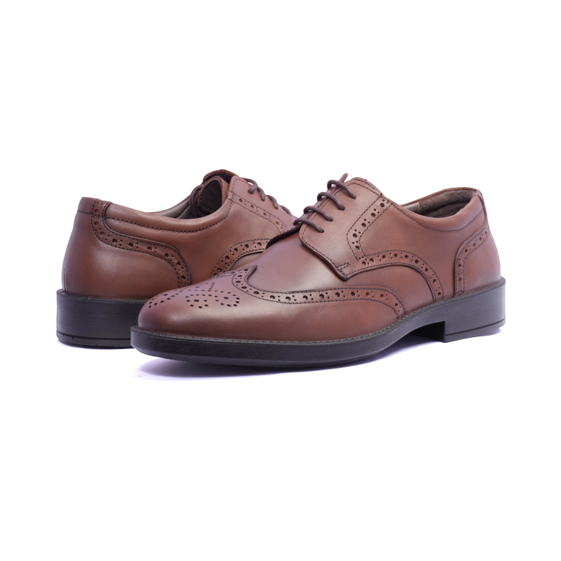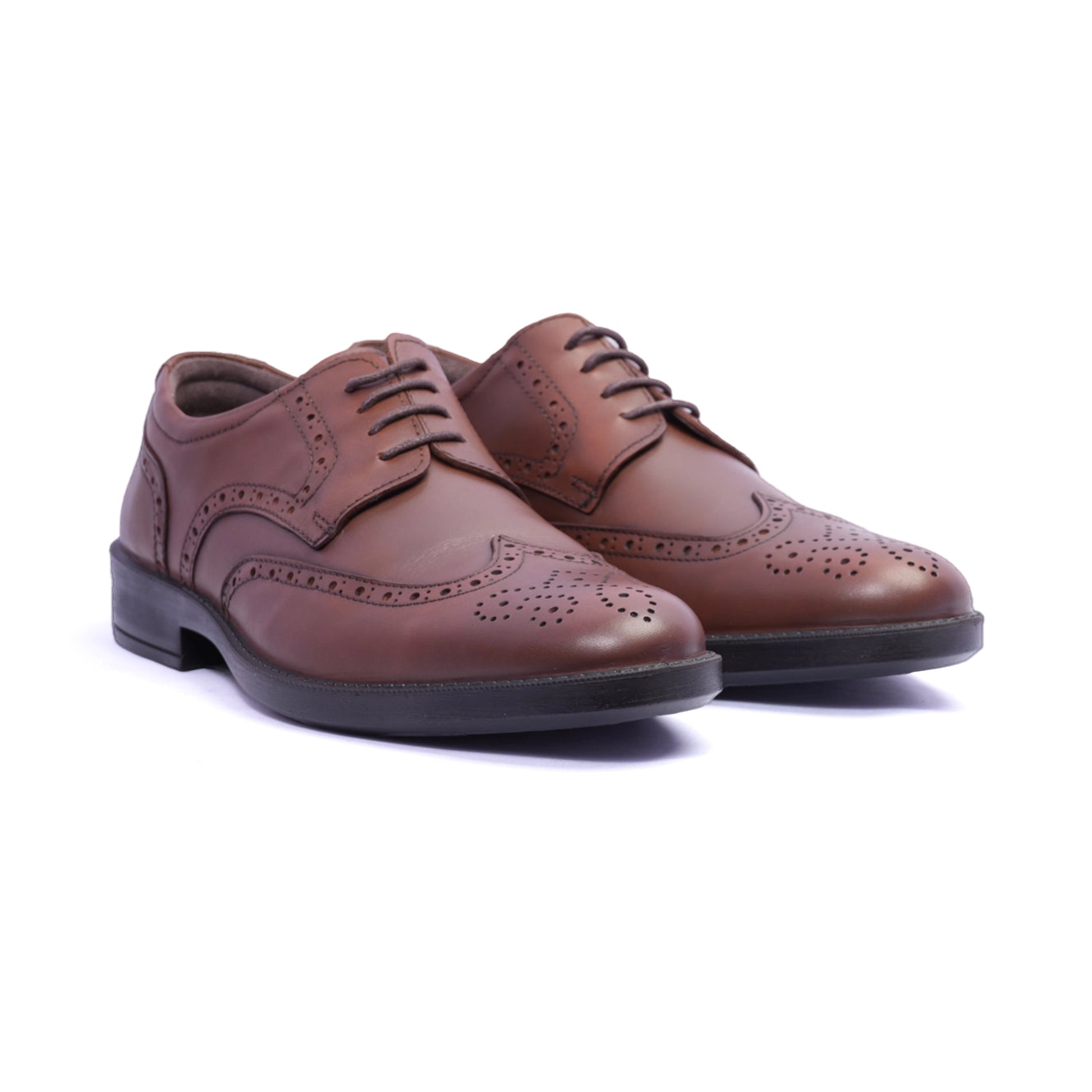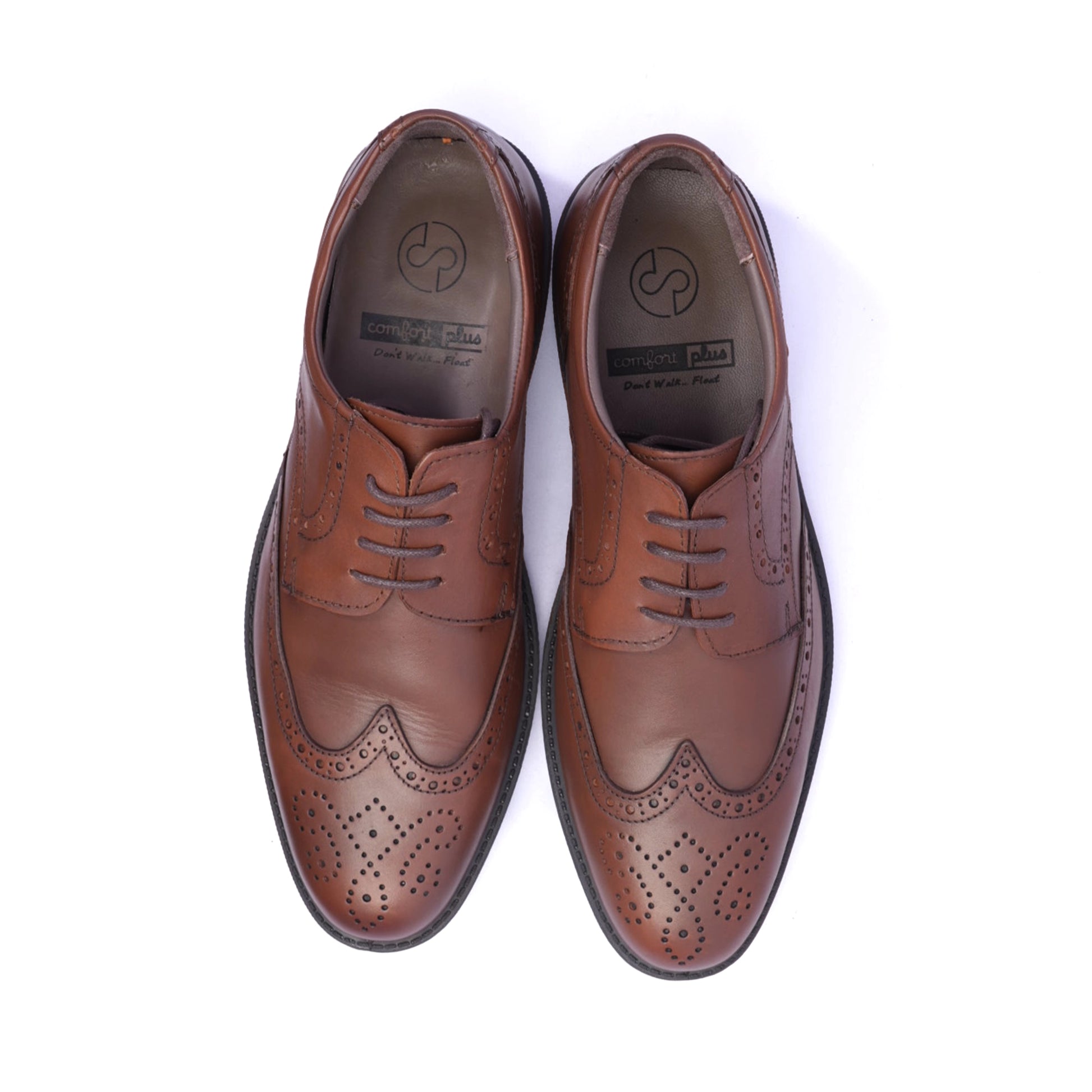 Get these elegant formal shoes from Comfort Plus. Made from genuine leather, they provide your feet with a luxurious look and enhanced durability. The formal lace-up design ensures a comfortable and customized fit. These shoes have a brogue design and include a shock absorber to protect your feet. In addition to the flexible outsole that enhances comfort. They are available in tan color.