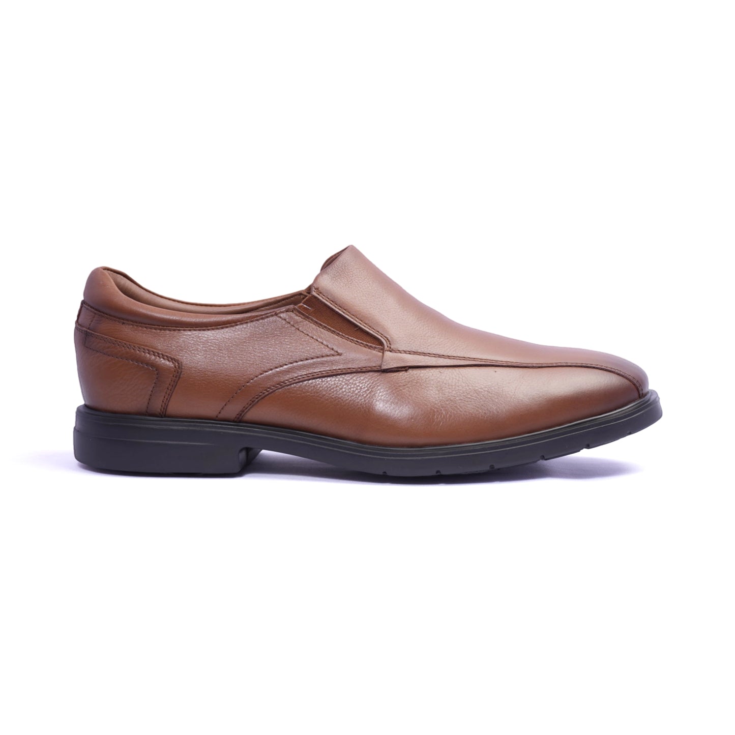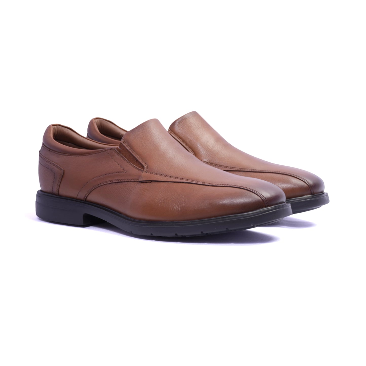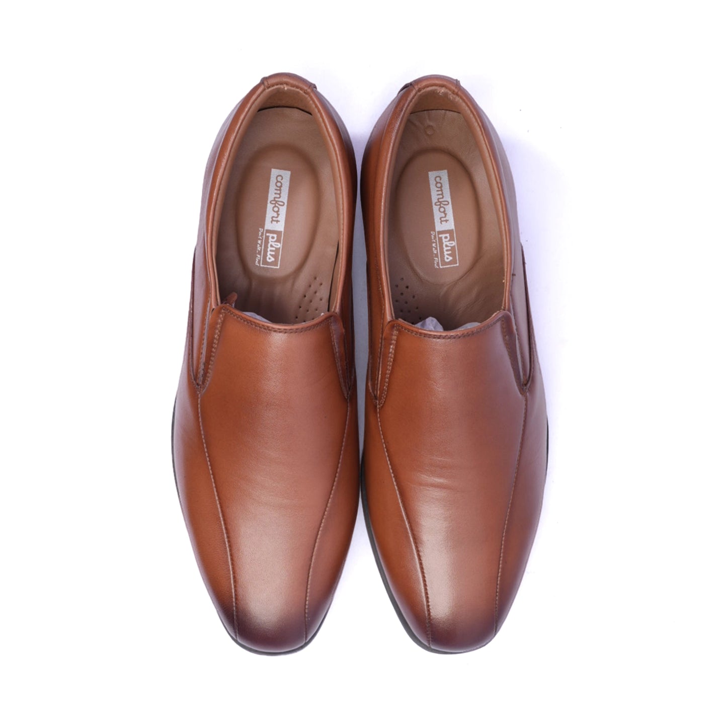 Improve your appearance with these fashionable leather derby shoes from Comfort Plus. These slip-on formal shoes are made from genuine leather, providing longevity and an elegant appearance. The extra light outsole guarantees exceptional comfort, and the cushioned insole offers outstanding support for extended wear. They come in gorgeous dark tan.