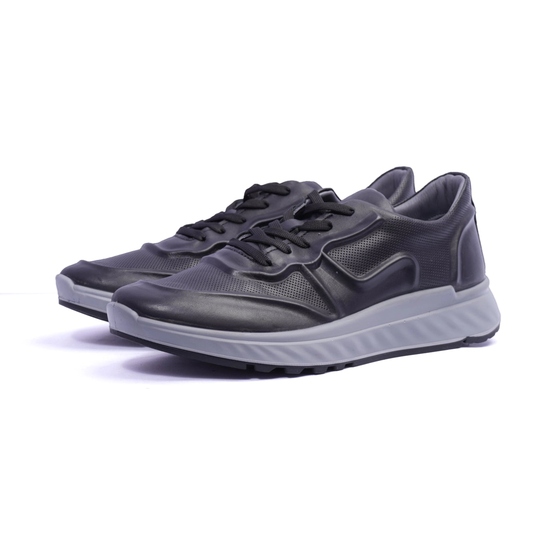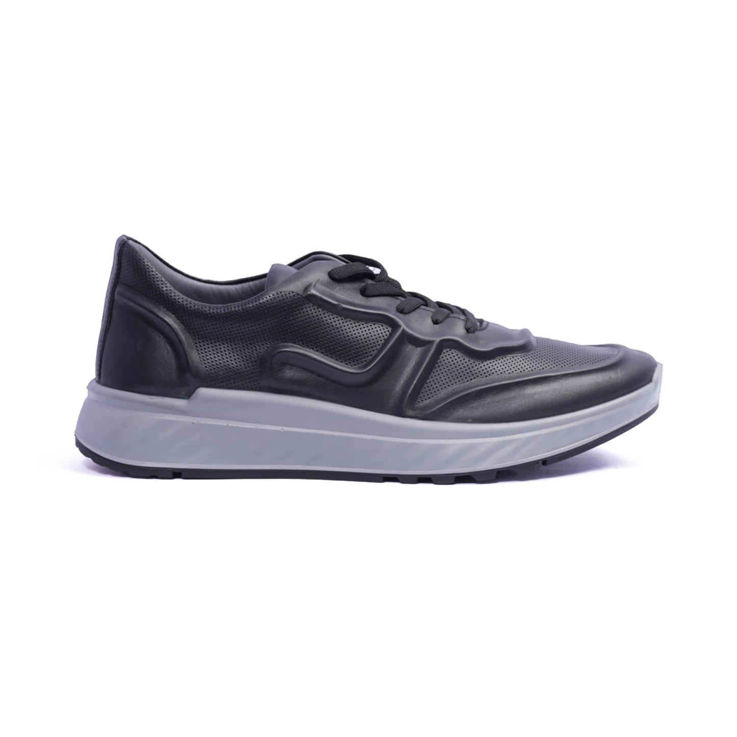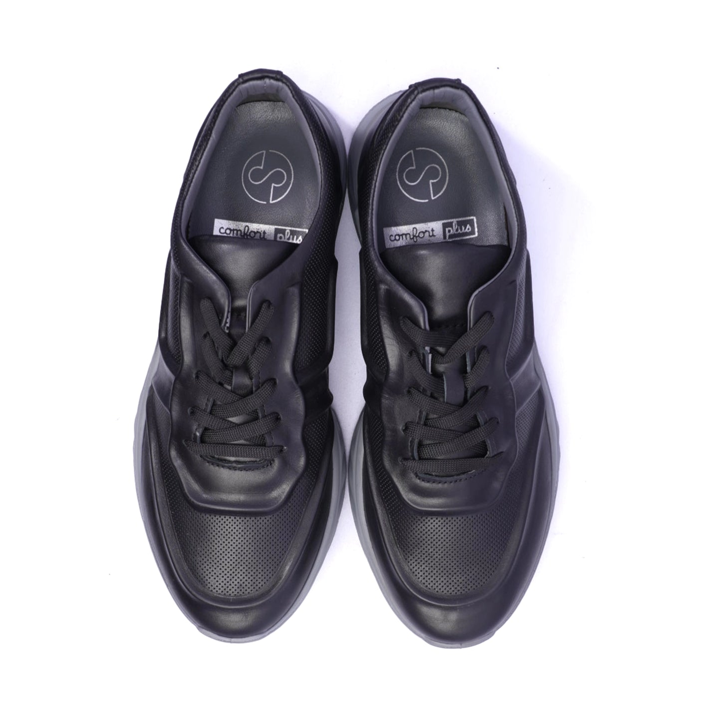 Enjoy elegance with these casual sneakers from Comfort Plus. These stylish sneakers come with a casual lace-up design that gives you an attractive and modern look. It is also made of high-quality leather, which adds more elegance and durability. Rest assured that we at Comfort Plus make sure to provide your feet with maximum comfort. These sneakers come in two tones: black upper and gray sole.