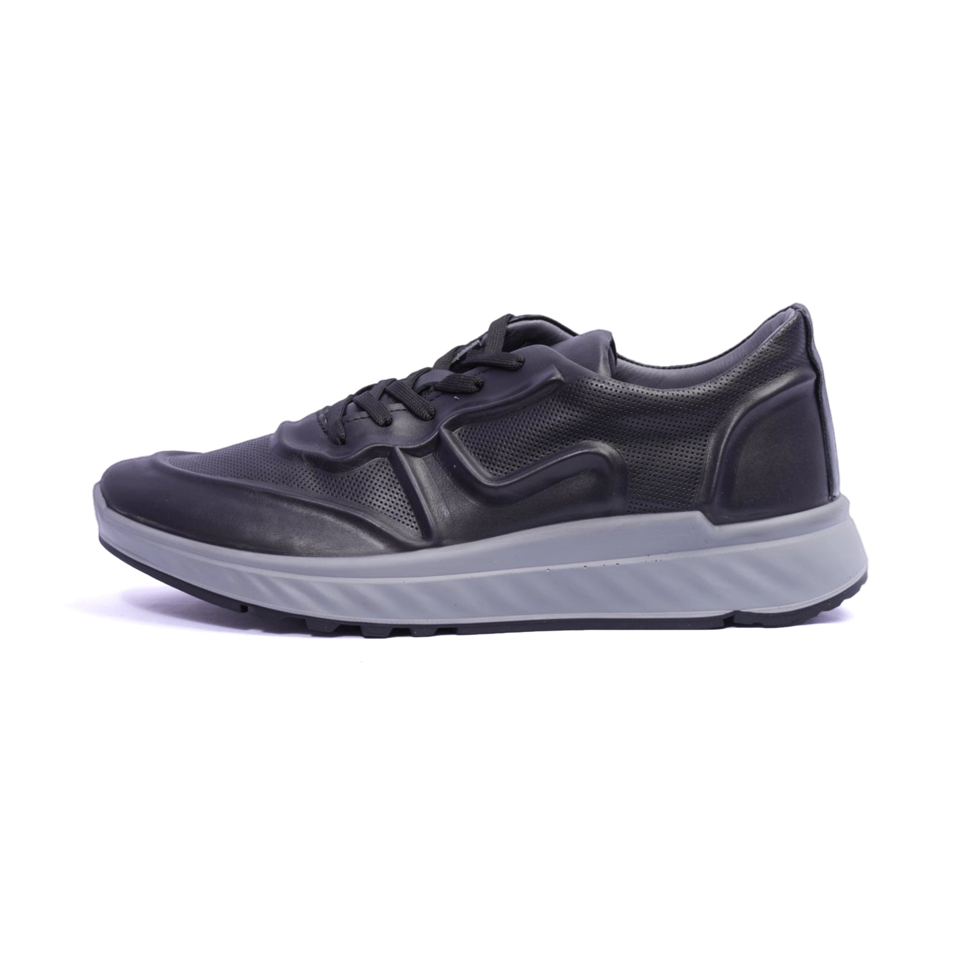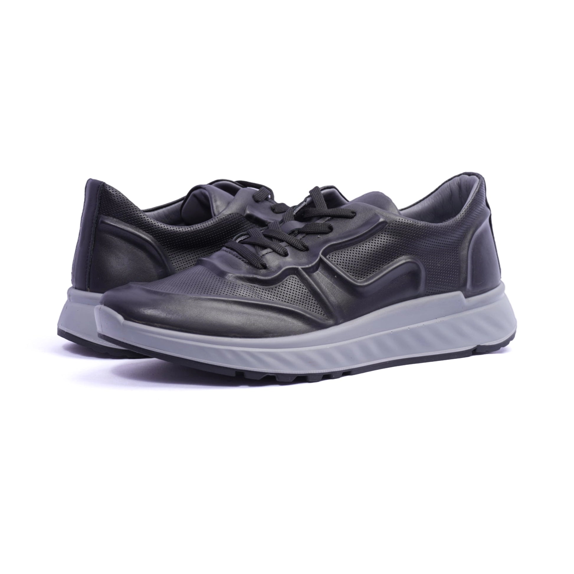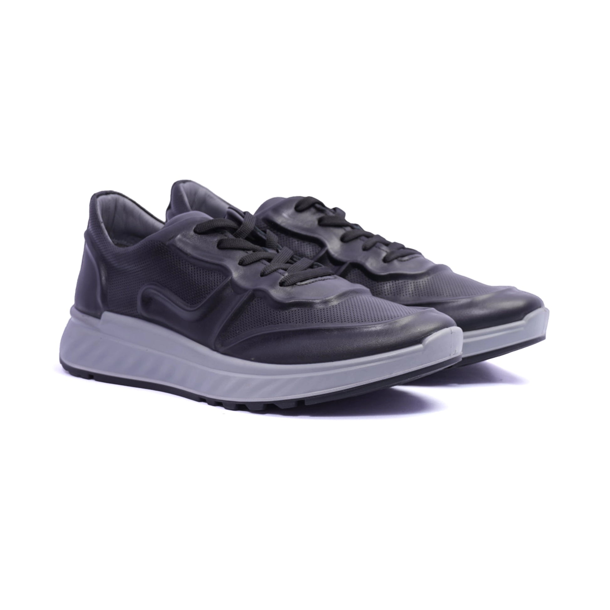 Enjoy elegance with these casual sneakers from Comfort Plus. These stylish sneakers come with a casual lace-up design that gives you an attractive and modern look. It is also made of high-quality leather, which adds more elegance and durability. Rest assured that we at Comfort Plus make sure to provide your feet with maximum comfort. These sneakers come in two tones: black upper and gray sole.