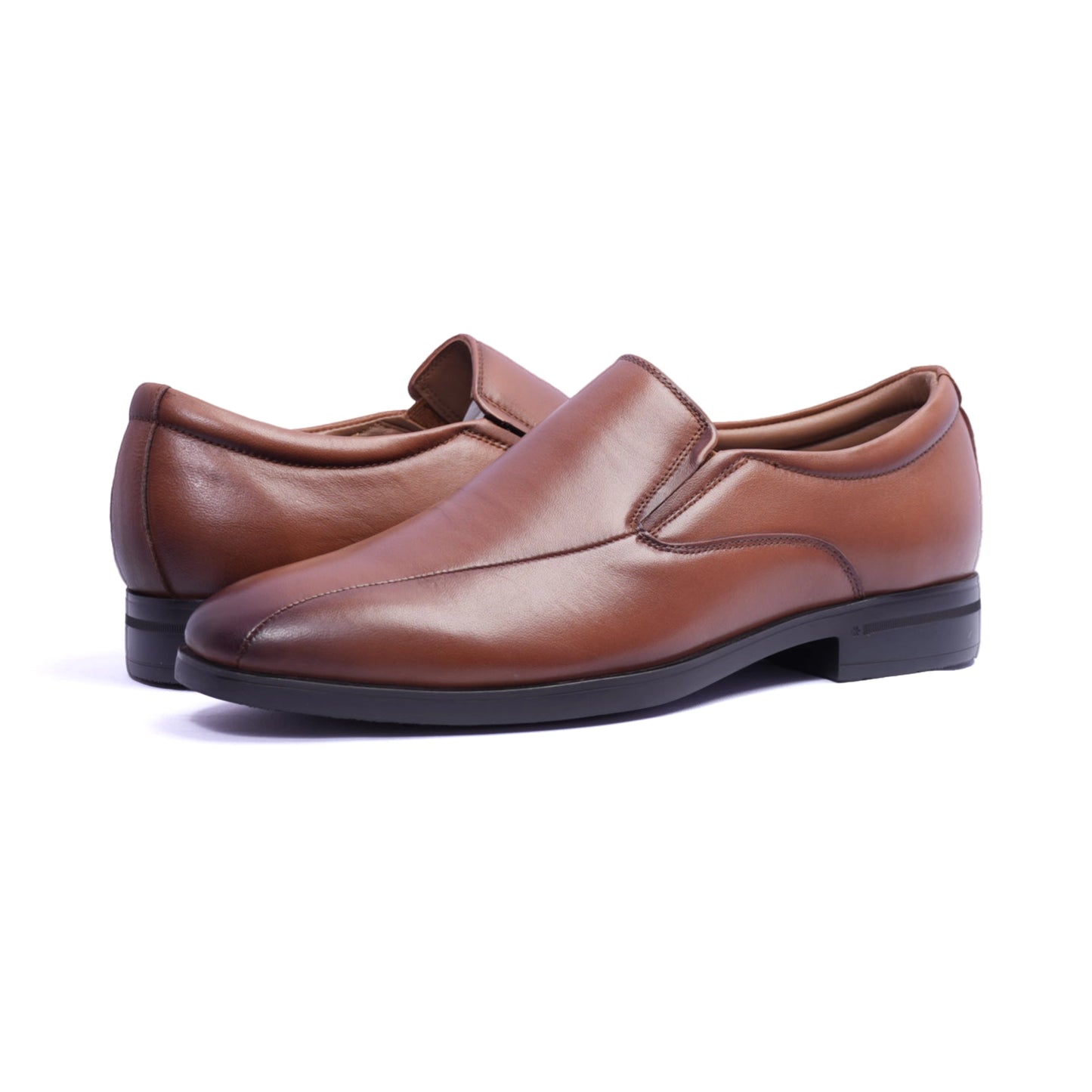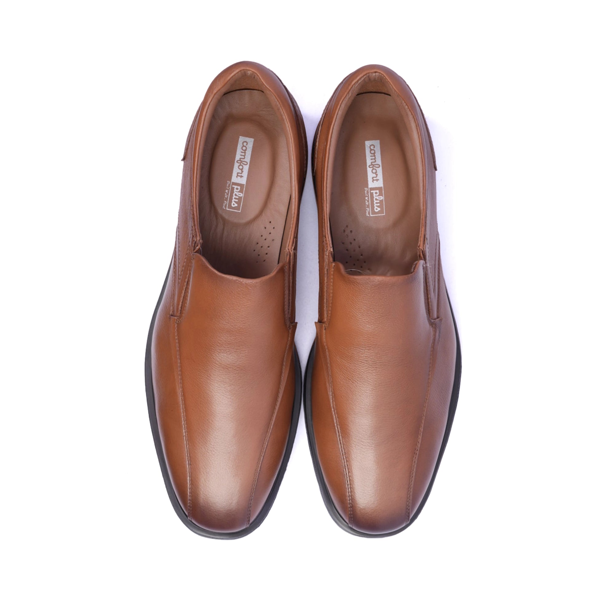 Enhance your formal look with these Stylish Design Loafers from Comfort Plus. These formal slip-on shoes are made from genuine leather, offering durability and a sleek finish. The extra light outsole ensures superior comfort, while the cushioned insole provides exceptional support for all-day wear. Perfect for any Formal occasion, these loafers combine elegance and comfort effortlessly. They are available in tan.