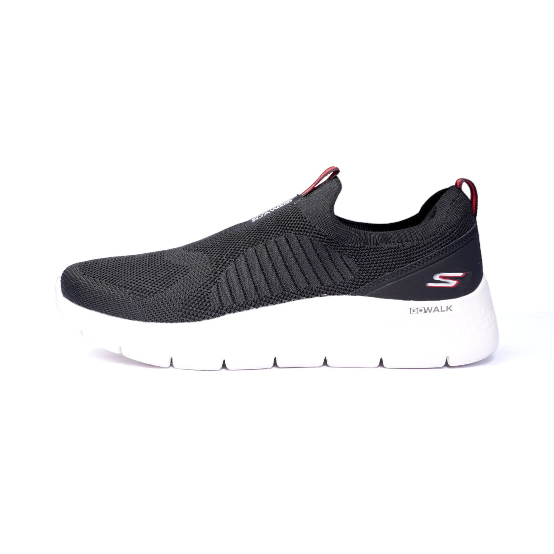 Attain your walking goals with the Skechers Go Walk® Flex-Remark shoes. These lace-free trainers feature an engineered mesh upper, a ventilated insole, and Skechers Goga Mat™ Air Cooled technology, keeping your feet cool and comfortable. The lightweight ULTRA GO® sock liner and flexible panels provide extra support, making every step a breeze. They are available in a stylish black-and-white color blend.